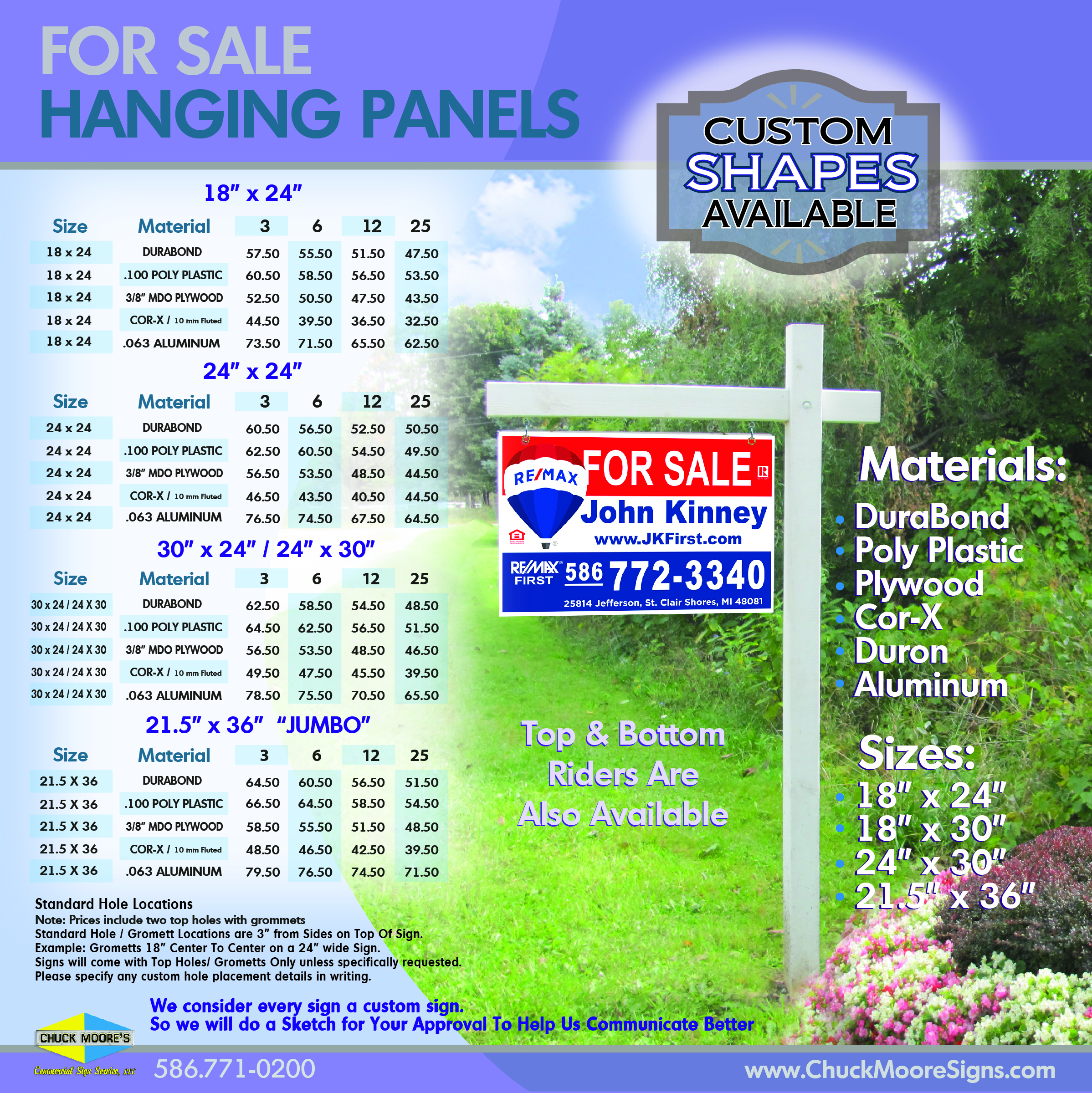 Hanging panels come in a variety of materials, sizes and shapes. See our examples of custom shaped signs for that extra attention. Hanging panels usually installed by other companies so make sure to let us know custom details. Talk with our sign professionals to discuss what works best for you.